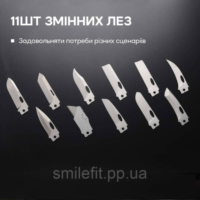 набір із трьох змінних клинків різної форми (clip point, cutting, sheepfoot);