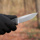 Трикутний отвір у хвості руківʼя органічно доповнює загальний дизайн конструкції. Отвір призначений для кріплення темляка, який накидається на руку під час використання ножа як підстрахування.