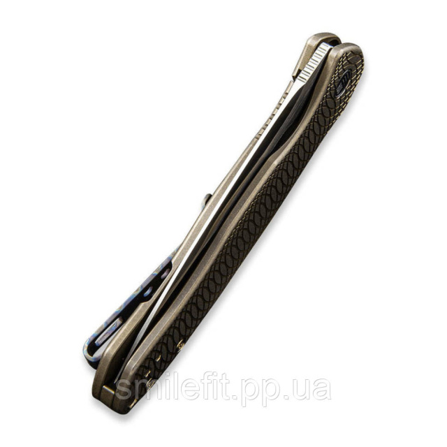 Складаний ніж Weknife Kitefin 2001G відрізняється легкою конструкцією (лише 81,7 г), яка розроблена спеціально для повсякденного використання. У складеному положенні її довжина не перевищує 108 мм, що разом із кліпсою спрощує транспортування інструмента. До речі, кліпса є двопозиційною: її можна фіксувати з правого чи з лівого боку руківʼя, адаптуючи під індивідуальний стиль носіння.