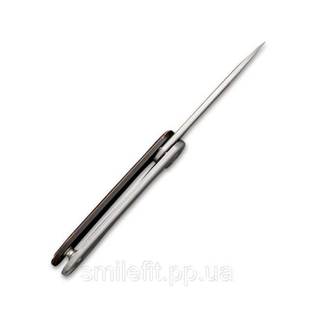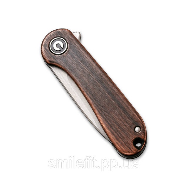 Опис складаного ножа Civivi Mini Elementum C18062Q-2:Модель C18062Q-2 — це зменшена версія ножа Civivi Elementum, одного з бестселерів бренду. Інструмент підходить для повсякденного носіння в кишені одягу або як брелока на сумці, коли немає можливості взяти з собою повноформатний аналог.Клинок із марки Sandvik 14C28N має пряме заточування. Це сталь шведського виробництва, що містить близько 14% хрому та 0.62% вуглецю, які наділяють метал стійкістю до корозії та твердістю 58-60 HRC. Поверхня сталі вручну оброблена методом hand rubbed, внаслідок чого на поверхні утворилися горизонтальні смуги, що усувають металічний блиск.Товщина леза дорівнює 2.2 мм. Воно розкривається за допомогою сталевого плавця та утримується у відкритому положенні завдяки пружній пластині замку frame lock. Кульковальник забезпечує плавний хід клинка.У руківʼї поєднуються два матеріали: з одного боку це нержавіюча сталь, з іншого — мідний сплав, який є окрасою дизайну. У хвості зроблено круглий отвір для темляка. Кліпса у цій моделі відсутня.Повна довжина інструменту складає 110 мм. Коли клинок ховається в руківʼя, це значення зменшується до 63.5 мм. Ніж важить лише 40.3 г, тому практично не відчувається під час транспортування.Характеристики:мініатюрний ніж-брелок для повсякденного носіння;матеріал клинка – сталь Sandvik 14C28N;твердість клинка – 58-60 HRC;тип заточування – прямий;тип замка – frame lock;плавність відкривання завдяки керамічному кульковальнику;матеріал руківʼя – нержавіюча сталь + мідь;повна довжина ножа – 110 мм;довжина клинка – 46.5 мм;товщина в обуху – 2.2 мм;довжина закритої конструкції – 63.5 мм;вага – 40.3 г.