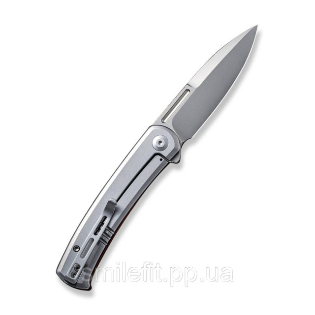 Опис складаного ножа Civivi Cetos C21025B-4:Модель Cetos від Civivi є частиною колекції EDC інструментів бренду, які були розроблені штатними дизайнерами компанії та побачили світ у 2022 році. Основну увагу перетягує на себе клинок зі списоподібною формою spear point, що має фальшлезо на ⅔ довжини. Цей тип клинка має підвищену проникаючу здатність, тому підходить для здійснення точкових проколів, а гостре лезо дозволяє різати матеріали різної щільності тонко й акуратно.Сталь 14C28N виступає матеріалом клинка. Це нержавіюча марка, розроблена шведською компанією Sandvik Stainless спеціально для виробництва ножів. Сплав має твердість на рівні 58-60 HRC та наділяє різальну крайку стійкістю до пошкоджень. Обробка клинка bead blast робить поверхню сталі неоднорідною, матовою.Товщина клинка в обуху дорівнює 3 мм. Фліпер дозволяє відкривати лезо однією рукою, фіксуючи його за допомогою замку frame lock. Механізм відкривання заснований на кульковальниках із кераміки.Плашка з натуральної деревини гібуртії з одного боку мінімізує ковзання ножа у долоні. З іншого боку оголена сталева конструкція руківʼя, доповнена кліпсою Tip-Up. Кліпса закріплена двома гвинтами та не передбачає зміни положення.Товщина руківʼя не перевищує 11 мм, а ширина інструменту становить 32.3 мм. Модель складається до 114.5 мм і важить 110.5 грамів.Характеристики:складаний ніж від Civivi, призначений для повсякденного носіння;колір – чорний;клинок виготовлений зі сталі 14C28N твердістю 58-60 HRC;тип заточування – прямий;метод обробки клинка – bead blast;замок frame lock;для відкривання призначений сталевий фліпер;матеріал руківʼя – мікарта + натуральна деревина;є однопозиційна кліпса;повна довжина конструкції – 202.9 мм;довжина у складеному вигляді – 114.5 мм;довжина клинка – 88.4 мм;товщина клинка – 3 мм;вага – 110.5 г.