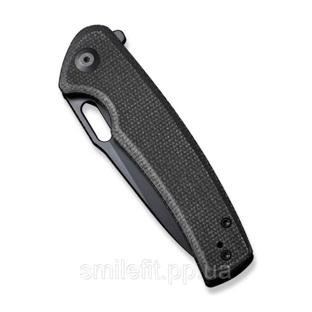 Опис складаного ножа Sencut Vesperon S20065-3:Простий дизайн ножа Sencut Vesperon компенсується гостротою та функціональністю клинка з прямим лезом, яке підходить як для вирішення побутових завдань, так і виконання робіт у польових умовах.Модель є ножем-фліпером, що розкривається натисканням на сталевий плавець. Але користувач може відкрити інструмент іншим способом, підчепивши пальцем клинок з наскрізним отвором і встановивши його в робочому положенні. Лезо утримується за допомогою замка liner lock із наскрізною конструкцією, що характеризується легкістю в очищенні.Профіль клинка drop point — це універсальна форма, яка часто зустрічається в кишенькових ножах різного цінового сегмента. Навантаження на такий клинок розподіляється рівномірно, що знижує ймовірність появи сколів та інших пошкоджень на різальній крайці.Матеріалом клинка виступає нержавіюча сталь 9Cr18MoV, легована молібденом і ванадієм. Вміст вуглецю в металі становить ±0.9%, а хрому — ±18%, що робить марку міцною та стійкою до іржавіння. Після термообробки твердість сталі досягає 58-60 HRC. Це оптимальне значення для використання інструмента в завданнях різної складності, чому також сприяє чорне покриття металу як додатковий спосіб зміцнення клинка.Руківʼя завдовжки 114.1 мм виконане з мікарти з особливим, великим плетінням. Приємна, трохи шорстка на дотик поверхня матеріалу привносить комфорт в експлуатацію ножа, а також робить цей процес безпечнішим, не даючи інструменту ковзати в руці. Товщина руківʼя дорівнює 12 мм.Сталеву кліпсу можна кріпити з різних боків руківʼя, закріпивши парою гвинтів. Всі дрібні деталі мають чорне покриття, щоб уникнути іржавіння у разі контакту з вологою. Вага моделі Vesperon не перевищує 96.9 г, що позитивно впливає на зручність її носіння.Характеристики:складаний ніж типу EDC з чорним клинком drop point;матеріал клинка – сталь 9Cr18MoV (58-60 HRC);тип заточування – прямий;замок liner lock;подвійний механізм відкривання конструкції (фліпер / отвір у клинку);матеріал руківʼя – мікарта з великим плетінням (canvas micarta);наявність двопозиційної кліпси;повна довжина – 199.2 мм;довжина клинка – 85.1 мм;товщина клинка – 3 мм;довжина руківʼя – 114.1 мм;товщина руківʼя – 12 мм;вага – 96.9 г.