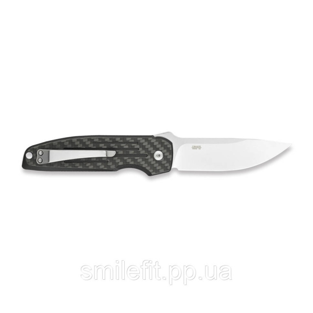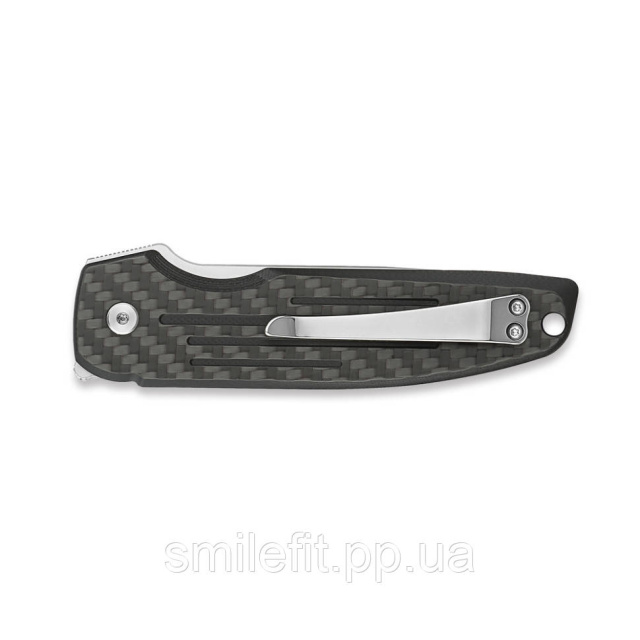 Карбонові накладки на руківʼї. Карбон характеризується високою стійкістю до механічних пошкоджень. Це означає, що руківʼя не боїться подряпин та ударів під час активної експлуатації ножа. До того ж матеріал несприйнятливий до впливу вологи та має унікальний зовнішній вигляд, який припаде до душі поціновувачам естетики.