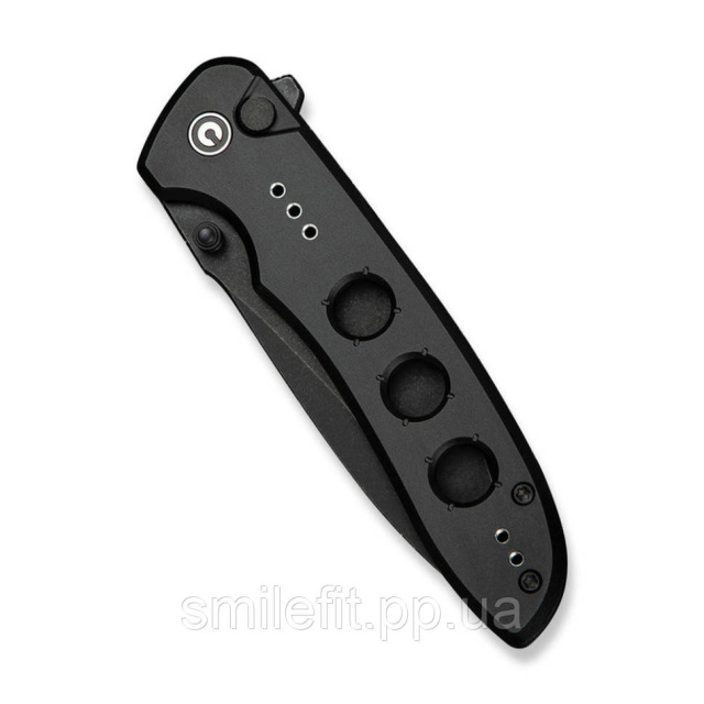 Руківʼя з алюмінію. Метал несприйнятливий до механічних пошкоджень і може похвалитися легкою вагою, що у поєднанні зі скелетонізованим дизайном робить ніж гранично легким для комфортного носіння щодня.