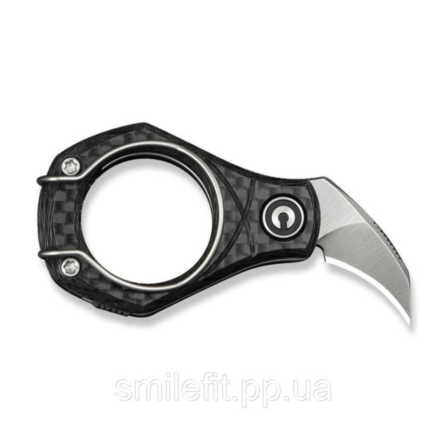 Попри мініатюрні розміри (лише 57,4 мм у закритому положенні), модель не позбавлена ергономіки, за яку відповідають шорсткі накладки з карбону на руківʼї. У конструкції також є кліпса на кишеню, яку можна використовувати як затискач для грошових купюр або кільце для носіння ножа як брелок.