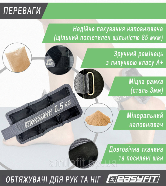 Обтяжувачі для ніг та рук EasyFit 0,5 кг (пара), Київ