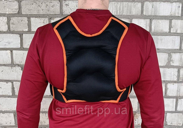 Комфортна посадка та свобода рухів. Жилет-обтяжувач щільно сідає і фіксується на тілі, при цьому не сковує рух тіла і рук при будь-яких фізичних вправах. Залізна гранула (кульки) рівномірно розподіляється по жилету, що дозволяє вирівняти навантаження на тіло виключаючи зміщення центру ваги, а також забезпечує еластичність і не сковує рухливість, як це буває в жилетах з металевими пластинами або піском. Жилет виконаний у вигляді ранця, що дозволяє зручно вдягати його без сторонньої допомоги. Розширені плечові ремені збільшують зону розподілу навантаження, зменшують відчуття тяжкості та забезпечують комфорт.