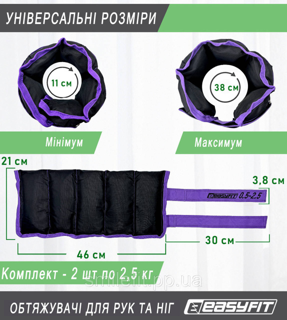 Обтяжувачі для ніг та рук EasyFit набірні чорно-фіолетові 0,5-2,5 кг (пара), Київ