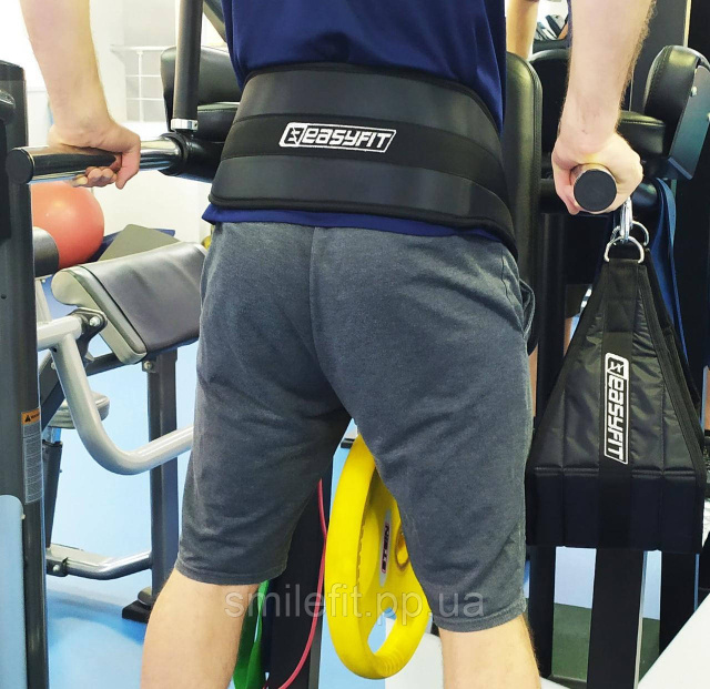 Пояс з ланцюгом EasyFit рекомендується для використання в комерційних спортивних залах з обтяженнями вагою до 150 кг. Високий комфорт при виконанні вправ забезпечено в результаті вибору раціонального крою поясу: навіть при роботі з великою вагою ремінь не тисне на тазостегнову кістку і поперек, а також не сповзає вниз.
