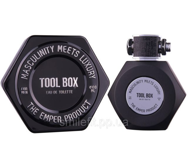 Tool Box Emper насамперед привертає увагу своїм незвичайним дизайном. Флакон у формі шестикутної гайки та кришка, у яку вкручений болт — відразу розумієш, що ця туалетна вода призначена для справжніх чоловіків. Для тих, хто вміє все на світі та не бачить перед собою перешкод. Жерстяне паковання містить напис «Мужство поєднується з розкішшю». Такі парфуми можна сміливо рекомендувати як подарунок чоловікам. Він обов'язково викличе позитивні емоції. Піраміда аромату подарує спочатку трохи ніжності. Солодкі квіти та дурманний жасмин першими звучать у яскравій композиції. Нота серця звучить солодкістю й дарує благородні дерев'яні нотки. Кінцева нота огортає теплом мускусу, амбровими та ванільними півтонами.