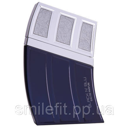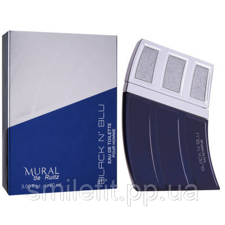 Чоловіча парфумована вода Black N`Blu Mural упакована в стильний флакон синього кольору зі сріблястою кришкою. Зустрічає аромат