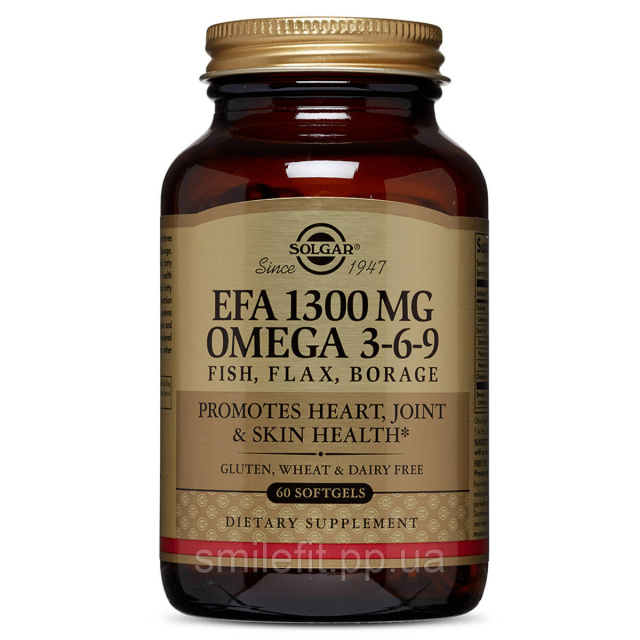 Омега 3-6-9 являє собою суміш масел лляного насіння, вечірньої примули, каноли, чорної смородини і гарбузового насіння. Дана формула від Solgar об'єднує ці відомі харчові масла для створення збалансованих пропорцій жирних кислот Омега-3, Омега-6 і Омега-9. Омега-3, альфа-ліноленова кислота (ALA) і Омега-6, гамма-ліноленова кислота (GLA), грають важливу роль в підтримці здорової шкіри і функції імунної системи. Дієтична олеїнова кислота, мононенасичених жирна кислота Омега-9, підтримує здоров'я серцево-судинної системи.
