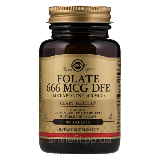 Фолієва Кислота (В9), Метафолін, 400 мкг, Metafolin, Solgar, 100 таблеток, Київ
