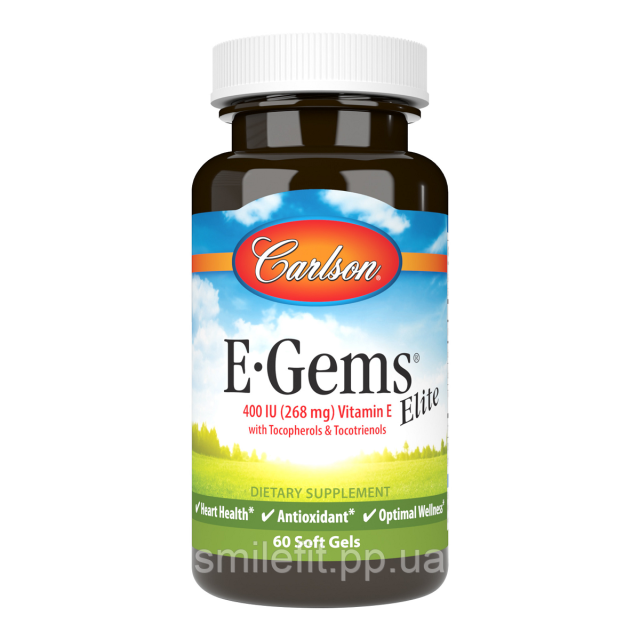 Вітамін E, 400 МО (268 мг), E-Gems Elite, Carlson, 60 желатинових капсул, Київ