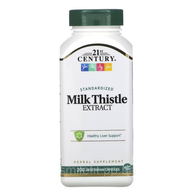 Розторопша, Стандартизований екстракт, Standardized Milk Thistle Extract, 21st Century, 200 вегетаріанських капсул, Київ