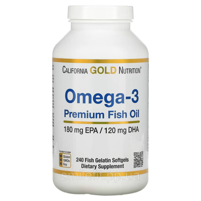 Риб'ячий жир преміум-класу з Омега-3, 180 EPA /120 DHA, Omega-3 Premium Fish Oil, California Gold Nutrition, 240 желатинових, Київ