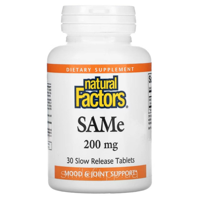 SAM-e (дисульфат тозилат) повільного вивільнення, 200 мг, SAMe (Disulfate Tosylate), Natural Factors, 30 таблеток, Київ
