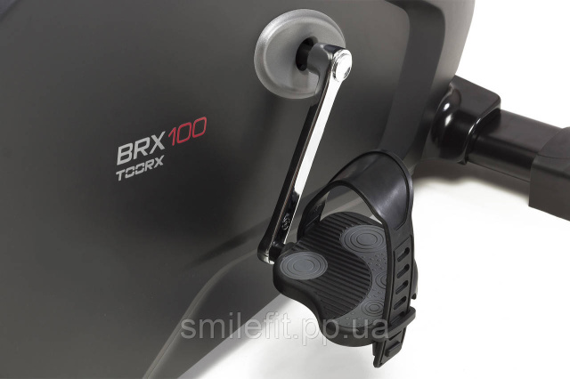 Велотренажер Toorx Upright Bike BRX 100 (BRX-100) із преміальної лінійки Chrono Line від італійського виробника Garlando S.p.A. призначений для повноцінного кардіотренування в домашніх умовах. Тренажер має 16 рівнів навантаження, що регулюються за допомогою сучасного комп'ютера. 12-кілограмовий маховик створює відмінну плавність ходу, знижуючи навантаження на суглоби та мінімізуючи ризик отримання травми в процесі занять. Велотренажер розрахований на вагу до 150 кг і підійде для користувачів зростом до 2 м. Вбудований приймач для бездротового датчика вимірювання пульсу буде доречним під час тренування по одній з чотирьох пульсозалежних програм. Консоль тренажера має підставку для смартфона/планшета. Сидіння велотренажера регулюється по висоті та в горизонтальній площині для індивідуального настроювання, а транспортувальні ролики в передній частині тренажера дозволяють переміщати його по кімнаті. Особливості: Магнітна система опору з комп'ютерним регулюванням навантаження. Масивний маховик вагою 12 кг забезпечує відмінну плавність ходу. Консоль має РК-дисплей із багатобарвним підсвічуванням, підставка для смартфона/планшета. 21 програма та 16 рівней навантаження для повноцінного кардіотренування. Відстань від педалей до сидіння становить від 70 до 95 см.