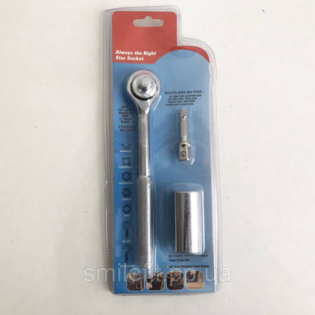 Тріскачка з універсальної головкою Instantly Grips any Shape 7-19 мм, Київ
