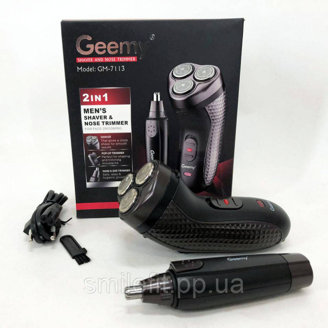 Електробритва + триммер Gemei GM 7113, 2 в 1 створена спеціально для чоловіків, які хочуть завжди добре виглядати як вдома, так і в дорозі. Є вбудований тример плюс тример для носа вух. При цьому про роздратування можна забути.