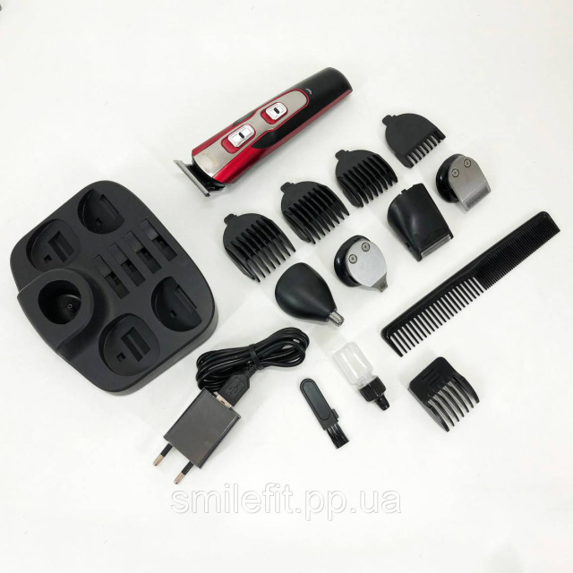 Машинка для стрижки 10в1 GEMEI GM-592, машина для окантування, підстригальна машинка. Колір: червоний, Київ