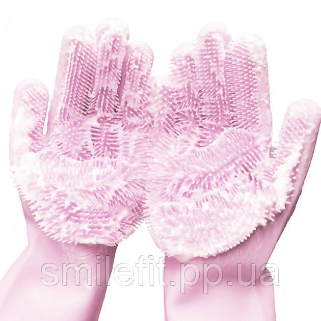 Силіконові рукавички Magic Silicone Gloves Pink для прибирання чистки миття посуду для будинку. Колір рожевий, Київ