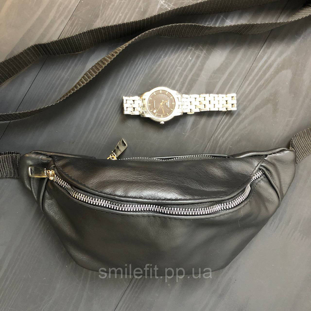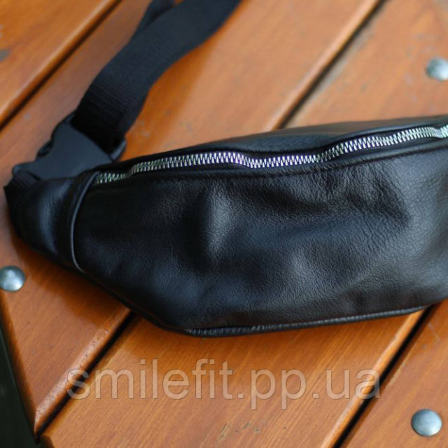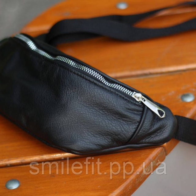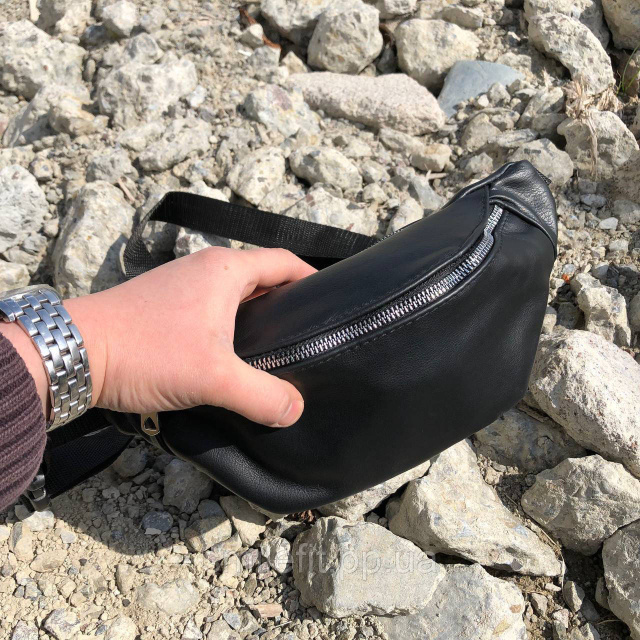 Шкіряна бананка сумка чорного кольору – стильний та функціональний аксесуар.