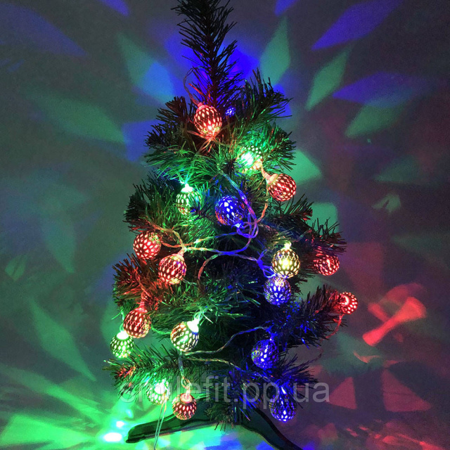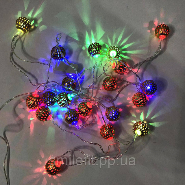 Гірлянда металеві кульки, різнобарвна, провід прозорий, 3м, Київ
