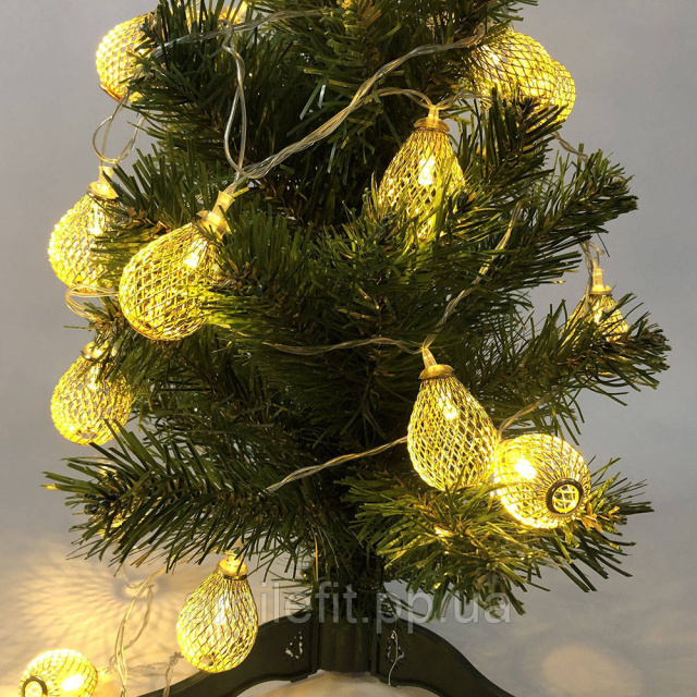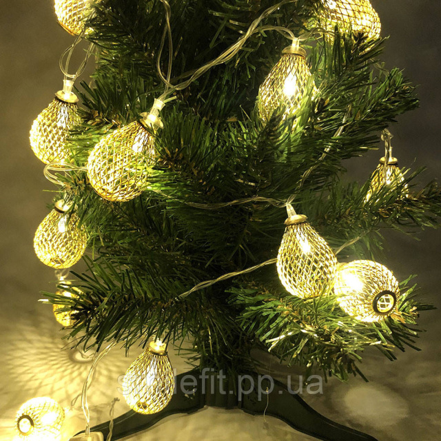 Гірлянда, теплий білий в металевих кульках, провід прозорий, 2м, Київ