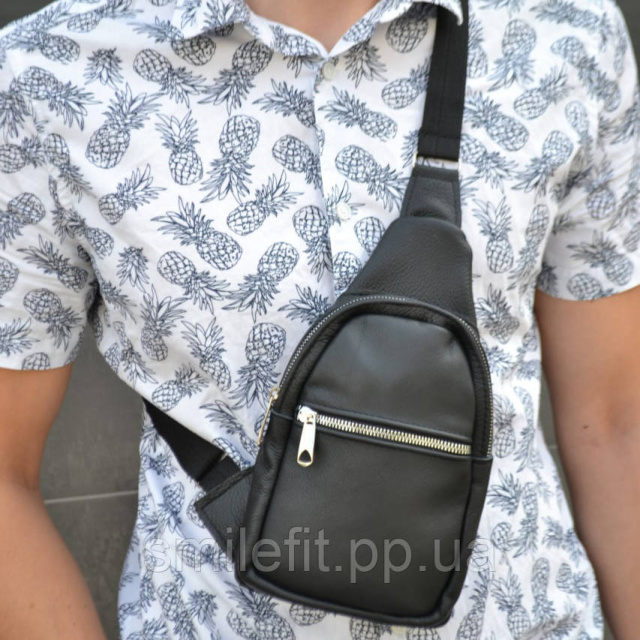 Сумка слінг із натуральної шкіри, Шкіряний слінг сумка. Срібні замки Модель: 57649, Київ