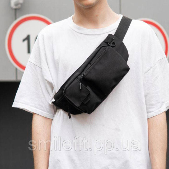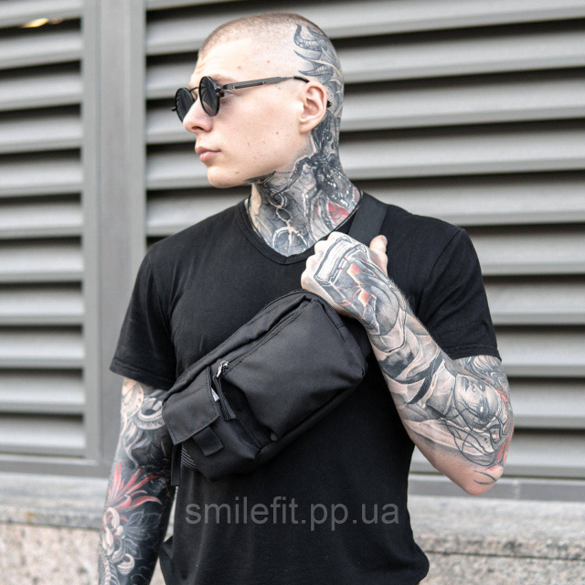 Якісна та надійна тактична сумка-бананка із міцної та водонепроникної тканини чорна через плече, Київ