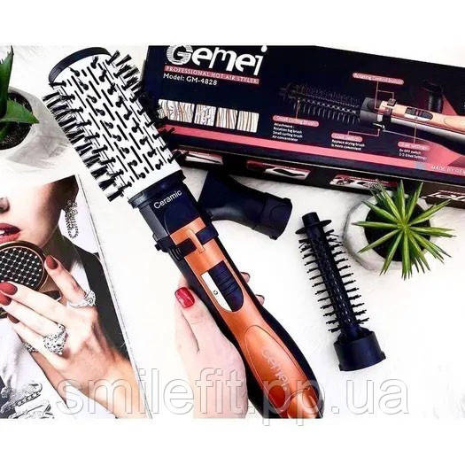 Фен Щітка Gemei Gm-4828 Браш Стайлер гребінець Для Брашинга, Фен щітка 3 в 1, Фен браш Gemei, Київ