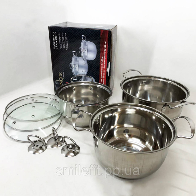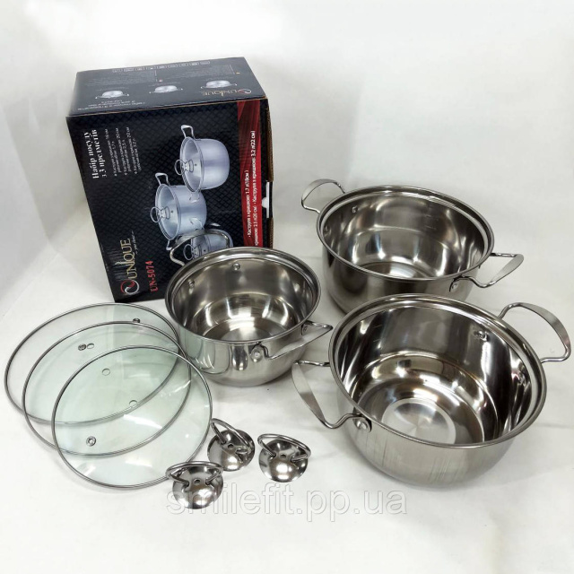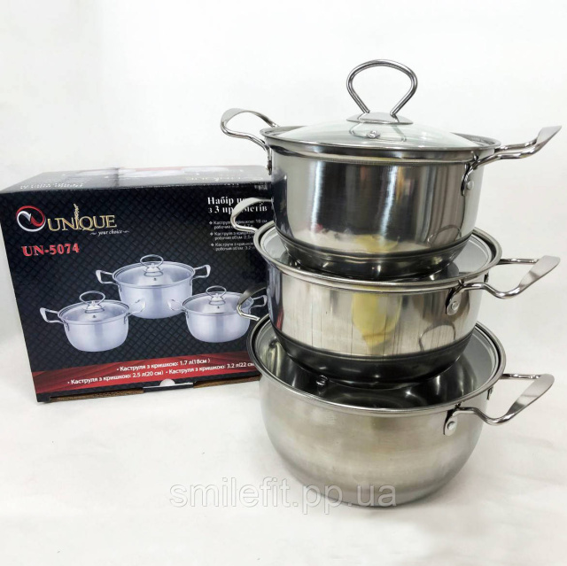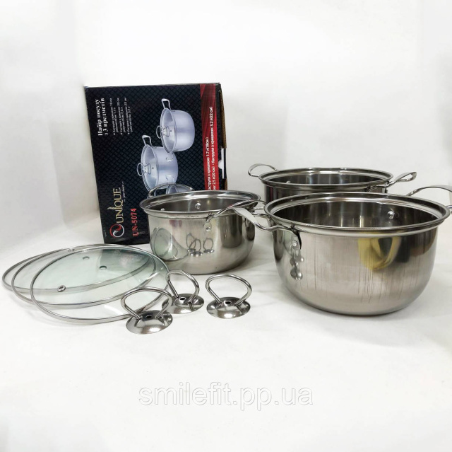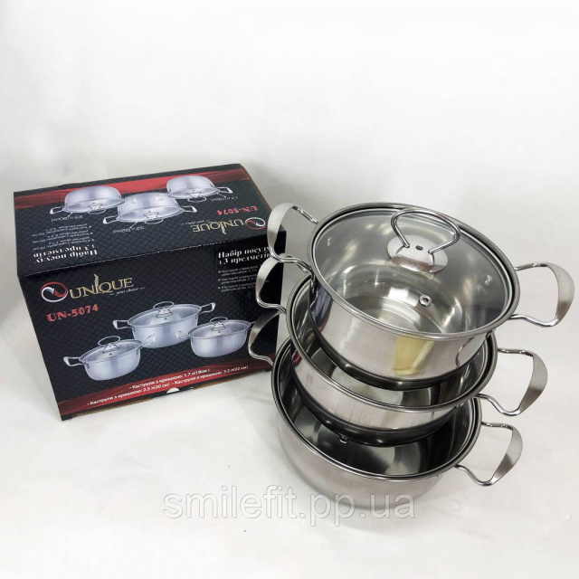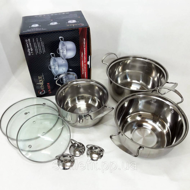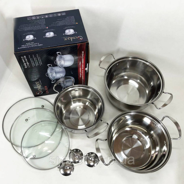 Набір каструль із нержавіючої сталі з кришками UNIQUE UN-5074, набір посуду для електричних плит, Київ