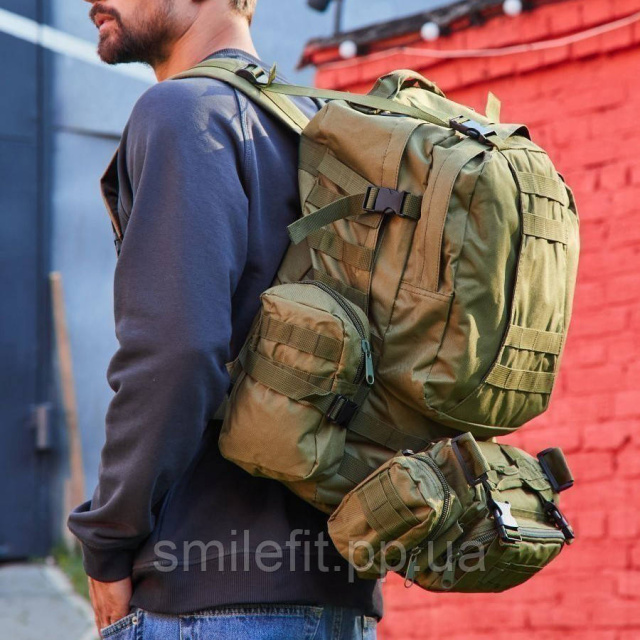 Рюкзак тактичний 55л з трьома підсумками! Якісний штурмовий для походу подорожей великий рюкзак баул, Київ