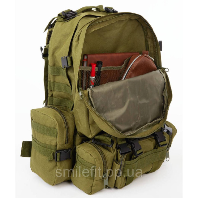 Тактичний рюкзак олива має багато внутрішніх та зовнішніх кишень на застібках, м’яку спинку з вентиляційними ходами, компресійні стяжки, а також м’які плечові ремені. За допомогою ременів, що регулюються, можна легко підігнати рюкзак під себе. Рюкзаки чоловічі можуть також використовувати і жінки, оскільки вони вважаються унісекс.