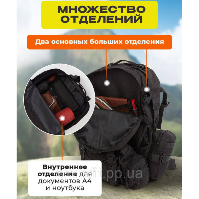 Рюкзак тактичний 50 літрів (+3 підсумками) Якісний штурмовий для походу та подорожей наплічник баул, Київ