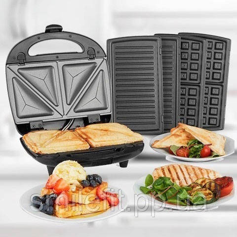 3 сменные пластины: вафельница, сэндвичница и гриль