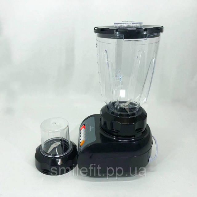 Універсальний стаціонарний блендер (подрібнювач) з насадкою кавомолка, дозволяє змішувати і перемелювати будь-які продукти, у тому числі і кавові зерна. Гострі ножі виконані з високоякісної нержавіючої сталі. Чаша з ручкою та мірною шкалою зроблена з міцного пластику та має об’єм 1500 мл. Має 4 швидкісні режими та імпульсний режим. Імпульсний режим роботи. Потужність 500Вт. Легко миється і чиститься. Заводська упаковка, інструкція.