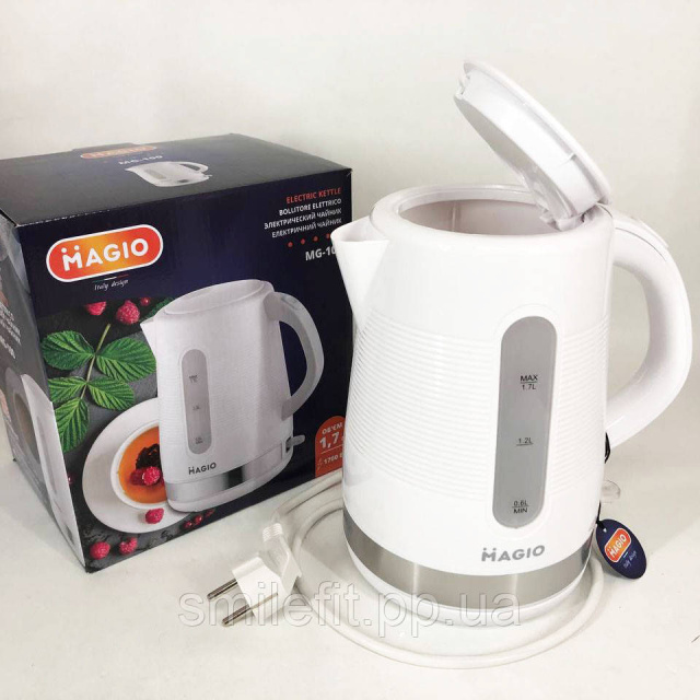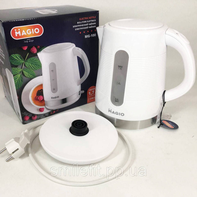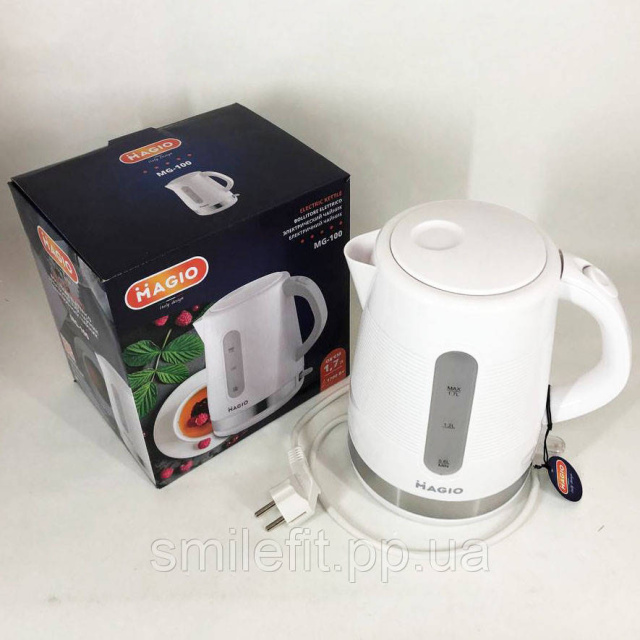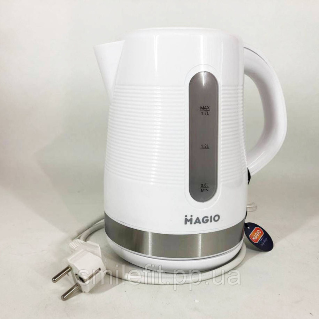 Електрочайник Magio МG-100 поєднує в собі стильний дизайн із чудовою якістю та довговічністю. Ця модель об’ємом 1.7 л забезпечує швидке кип’ятіння води для всієї родини.