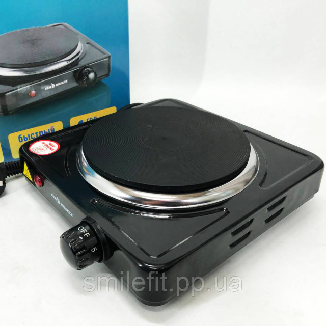Настільна плита електрична Sea Breeze SB-061 1000 Вт, компактна переносна електроплита. Колір: чорний, Київ