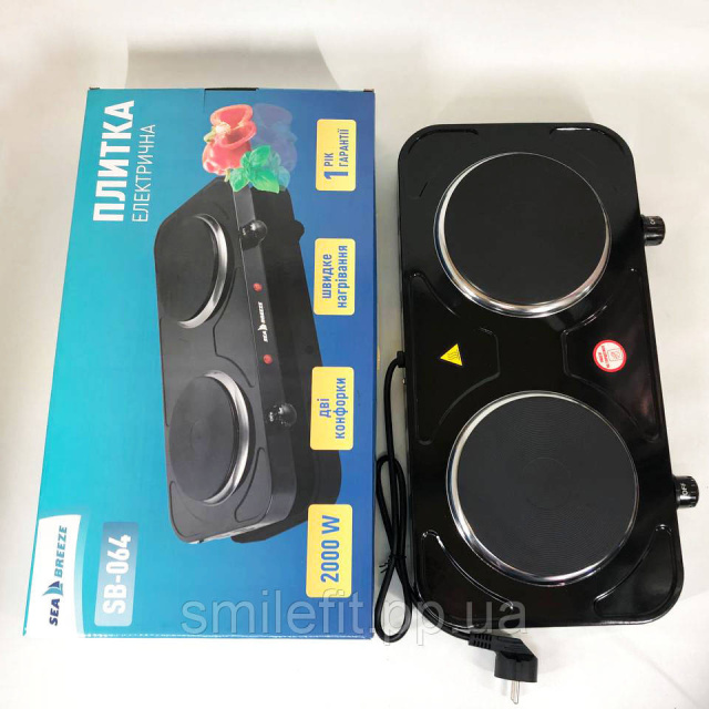 Настільна плита електрична Sea Breeze SB-064 2000 Вт, переносна настільна електроплита. Колір: чорний, Київ