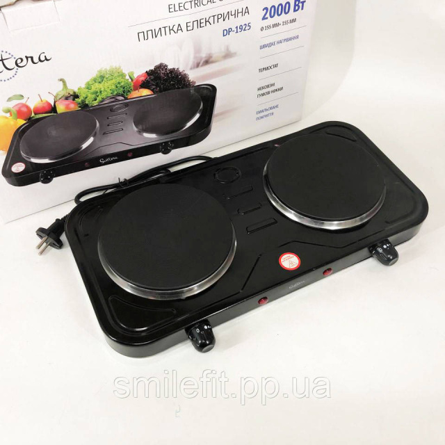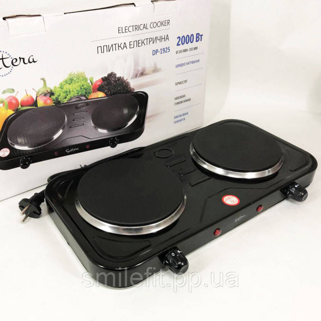 Плита електрична Suntera DP-1925, подвійна електроплита, потужна настільна електроплита. Колір: чорний, Київ