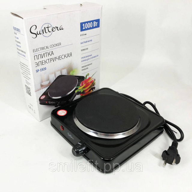 Плита електрична Suntera SP-1920, електроплита для дачі, електроплита 1000 w. Колір: чорний, Київ