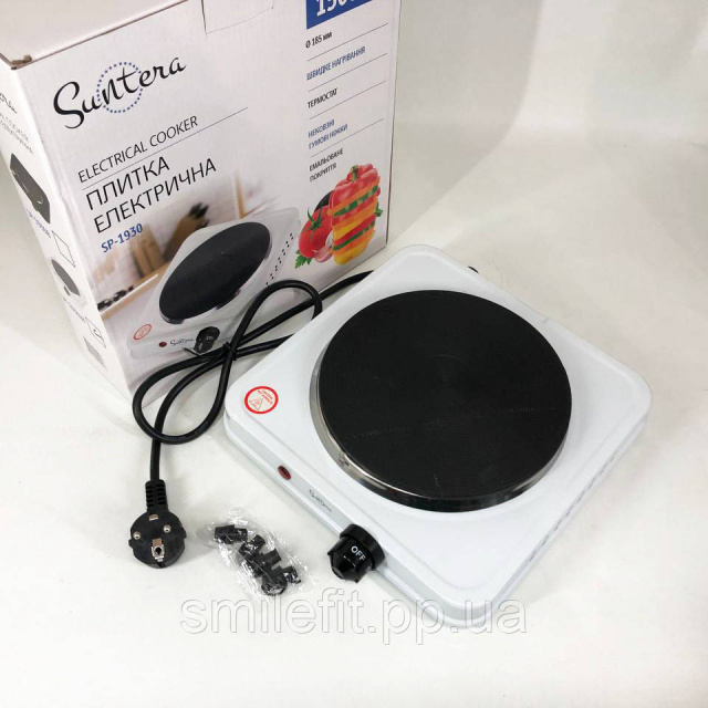 Плита електрична Suntera SP-1930, електроплита 1 комфорка, електроплита кухонная. Колір: білий, Київ