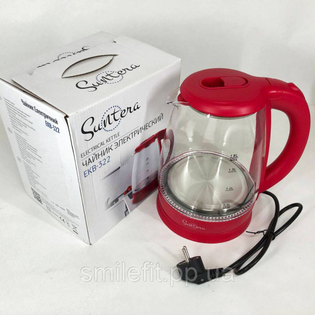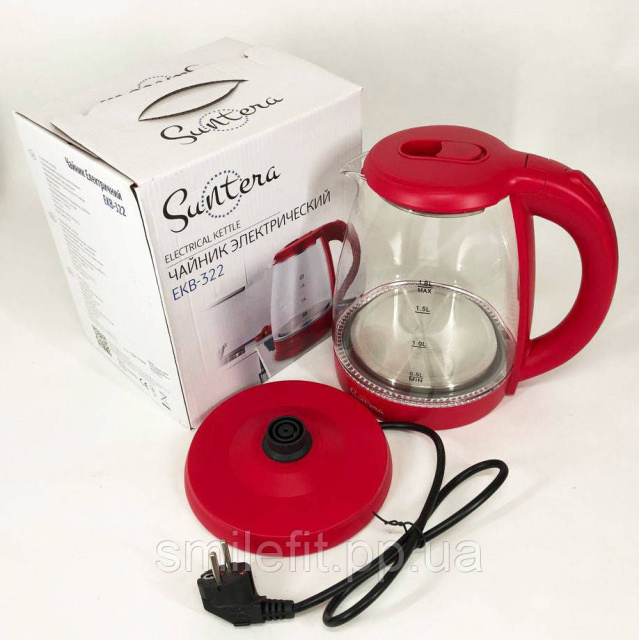 Електрочайник Suntera EKB-322R, чайники з підсвічуванням, електрочайники з підсвічуванням. Колір: червоний, Київ