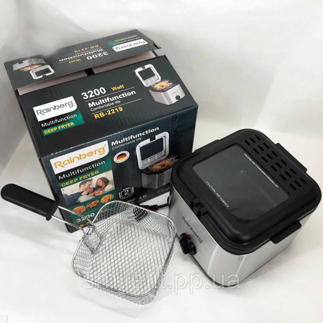 Фритюрниця для домашнього використання від виробника техніки для кухні RAINBERG призначена для смаження у фритюрі картоплі фрі, крокетів, курячих ніжок, крилець, чіпсів, нагетсів та багатьох інших делікатесів. Красиві золоті хрусткий картопля. Завдяки фритюрниці ви можете готувати їхні будинки і будете набагато смачнішими та дешевшими, ніж ті, які купуються в магазині.