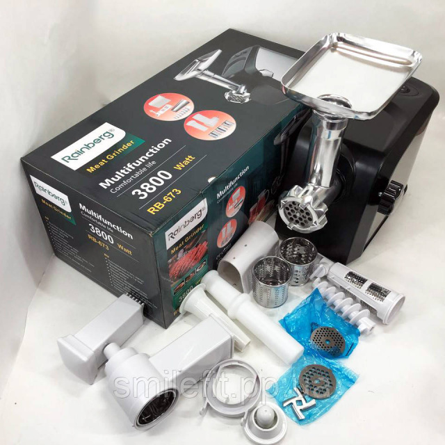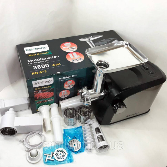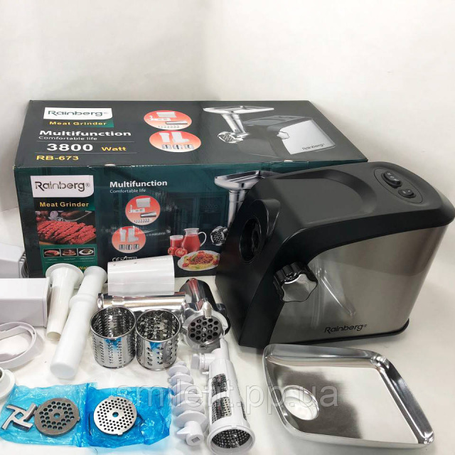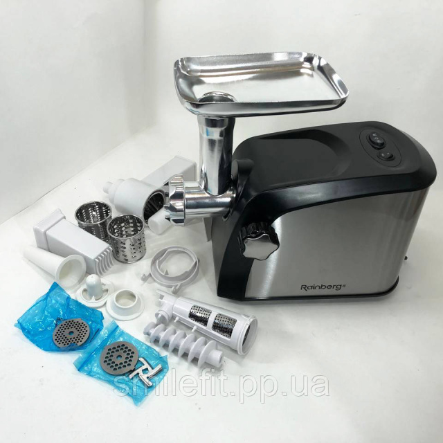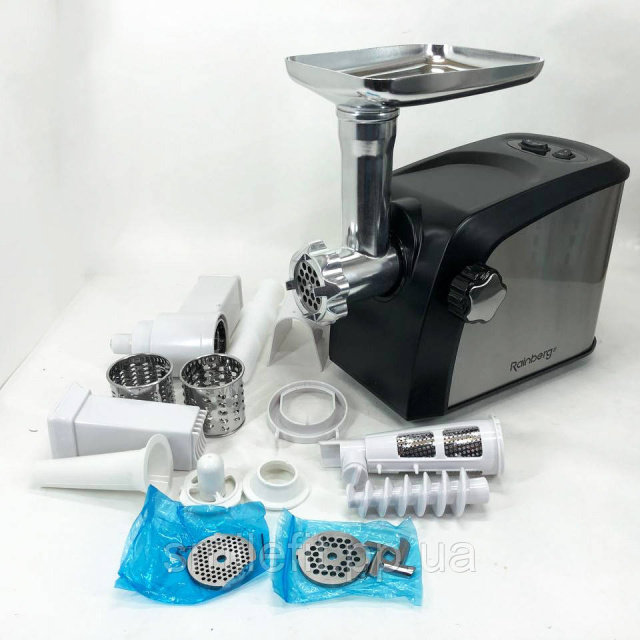 Електрична м'ясорубка Rainberg RB-673 із соковижималкою та шатківницею 9 насадок 3000W з реверсом, Київ