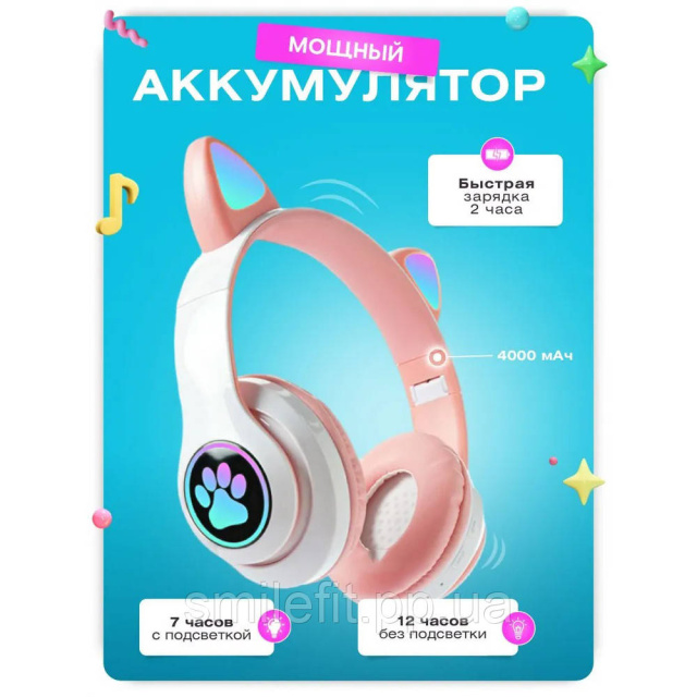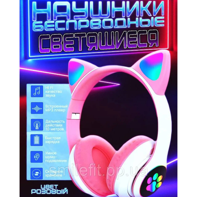 Навушники Bluetooth MDR CAT ear CAT ear VZV-23M 7805 мають незвичайний, яскравий і стильний дизайн з вушками кішки та різнобарвним підсвічуванням.