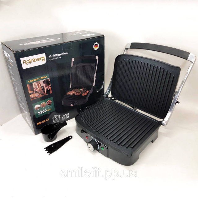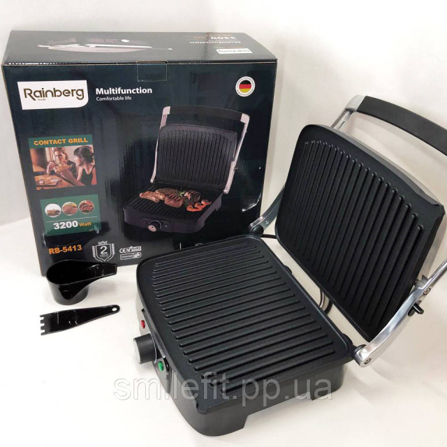 Гриль притискний Rainberg RB-5413 терморегулятор антипригарний 3200 Вт нержавіюча сталь, Київ