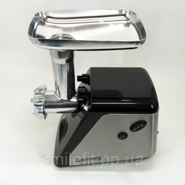 Електрична м’ясорубка Rainberg RB-676 | 3800W призначена для виготовлення фаршу з м’яса, риби, грибів, нарізки овочів та фруктів. Електро-м’ясорубка шнекового типу має функцію реверс, зворотне обертання ножів, що запобігає ущільненню продуктів усередині м’ясорубки та забезпечує якісне подрібнення.